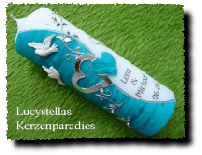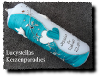 Hochzeitskerze Modern Rahmen Herz Ranke Tauben türkis silber