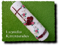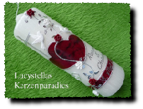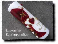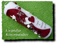 Hochzeitskerze Trend Herz Kreuz Röschenranke Strass weinrot rosa silber