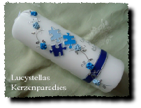 Hochzeitskerze Modern Puzzle Ranke blau silber