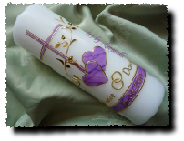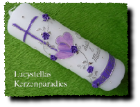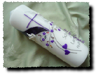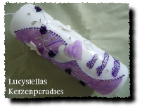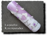 Hochzeitskerze Herz Kreuz Perlen flieder gold