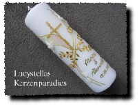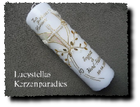 Hochzeitskerze Kreuz Ranke Spruch Noten créme weiß gold