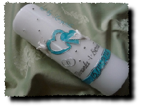 Hochzeitskerze Modern Herz Kreuz Strass hellblau silber