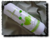 Hochzeitskerze Herz Kreuz apfelgrün silber