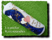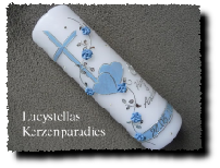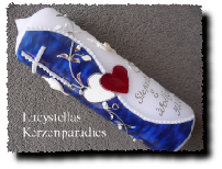 Hochzeitskerze Modern Rahmen Herz Ranke Kreuz blau rot weiss silber