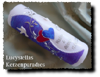 Hochzeitskerze Modern Rahmen zwei Herzen Ranke Perlen Röschen Strass flieder lila silber