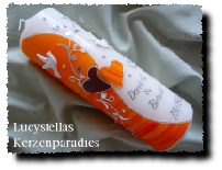 Hochzeitskerze Rahmen zwei Herzen Ranke orange braun silber