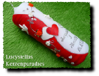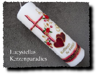 Hochzeitskerze Modern Herz Kreuz Tauben rot gold