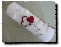 Hochzeitskerze Rahmen zwei Herzen Ranke rot weiß silber