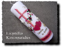 Hochzeitskerze Modern Herz Kreuz Perlen rot rosa silber