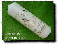Die Farbe des Motivs und das Motiv der Hochzeitskerze selbst können gerne auch individuell gestaltet werden.