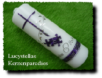 Hochzeitskerze Modern Puzzle Kreuz Perlen lila silber