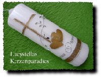 Hochzeitskerze Modern perlmutt Herz Kreuz Gold silber