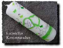 Hochzeitskerze Modern Doppelherz Ranke Schmetterlinge Spruch Strass apfelgrün silber