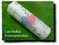 Alle auf dieser Seite bereitgestellten Informationen und Gestaltungselemente sind urheberrechtlich geschützt. Jegliche Vervielfältigung der auf diesen Seiten zur Verfügung gestellten Texten, Bildern und Grafiken bedarf der ausdrücklichen Erlaubnis des Unternehmens oder des Autors in Schriftform. Das Urheberrecht des Autors bleibt unberührt. Das Nutzungsrecht liegt bei dem Herausgeber und darf ohne schriftliche Genehmigung nicht an Dritte weitergegeben werden. Alle Texte ohne Autorenangabe unterliegen dem Urheberrecht des Herausgebers. Ebenfalls untersagt ist jegliche Vervielfältigung auf andere elektronische und nicht elektronische Medien. Die Verwertung und Vervielfältigung dieser Bild- und Textdateien ohne schriftliche Genehmigung von "Lucystellas-Kerzenparadies" oder "Andrea Weigand Kerzendesign" ist untersagt (§ 72 i.V.m. § 2 Abs. 1 Nr. 5 UrhG) und wird strafrechtlich verfolgt.