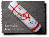 Hochzeitskerze Rahmen zwei Herzen Ranke rot weiß gold