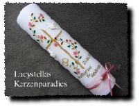 Hochzeitskerze Kreuz Blütenranke Tauben Schleife rosa gold