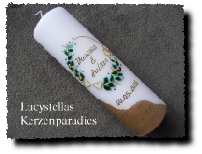 Hochzeitskerze Herz Kreuz Perlen grün gold