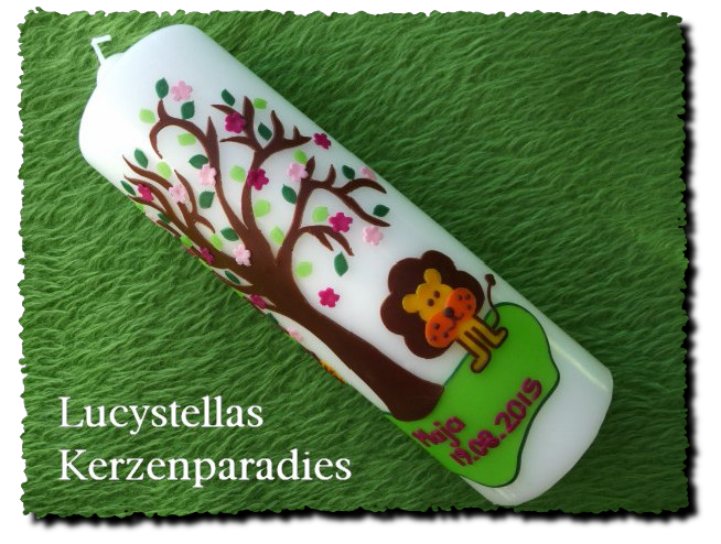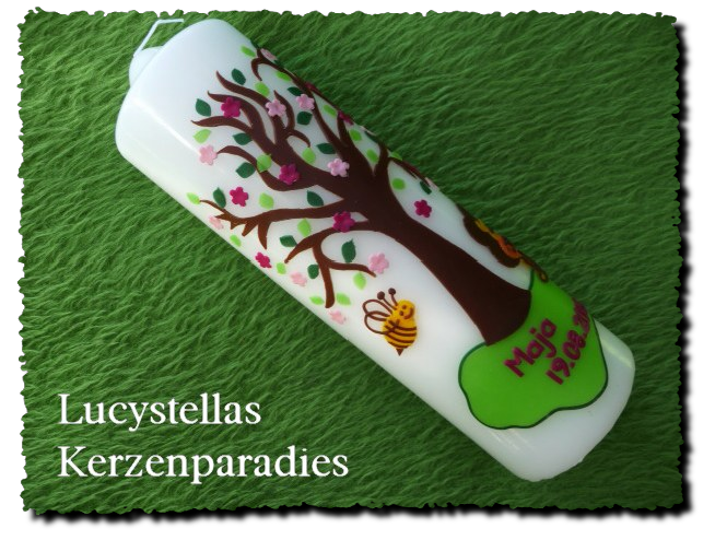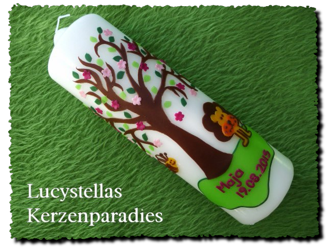Taufkerze Lebensbaum Biene Löwe pink rosa silber