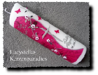 Die Farbe des Motivs und das Motiv der Taufkerze selbst können gerne auch individuell gestaltet werden.